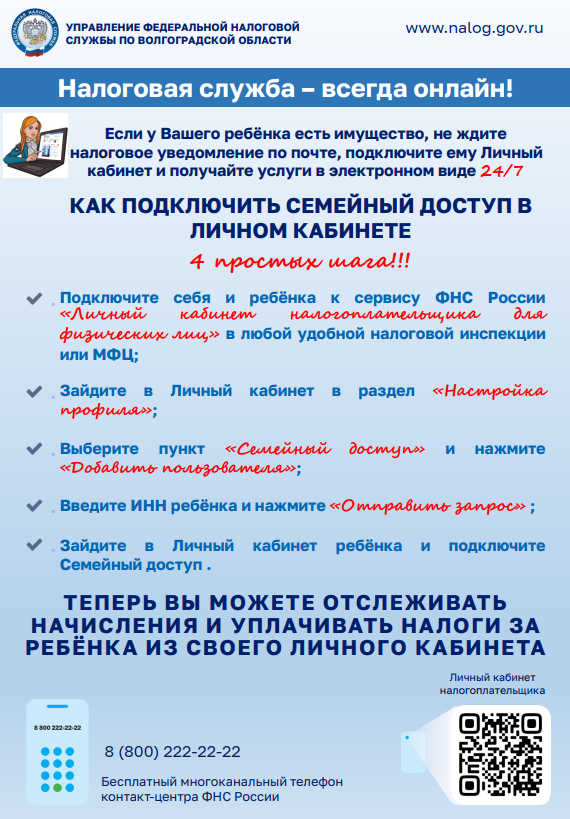 Кроме того, все желающие получат доступ к интернет-сервису «Личный кабинет налогоплательщика для физических лиц» (https://clck.ru/3RPDxe), а также подробную информацию о функциональных возможностях электронных сервисов ФНС России.