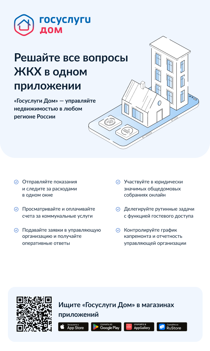 «Госуслуги Дом» – мобильное приложение, которое позволяет решить все вопросы ЖКХ в одном окне. Приложение создано на базе государственной информационной системы ЖКХ («ГИС ЖКХ»). Цифровое решение развивает АО «Оператор информационной системы» при поддержке Минстроя и Минцифры России. Приложение доступно для скачивания в RuStore, AppStore, Google Play и AppGallery. Более 11 млн россиян уже сделали установку.